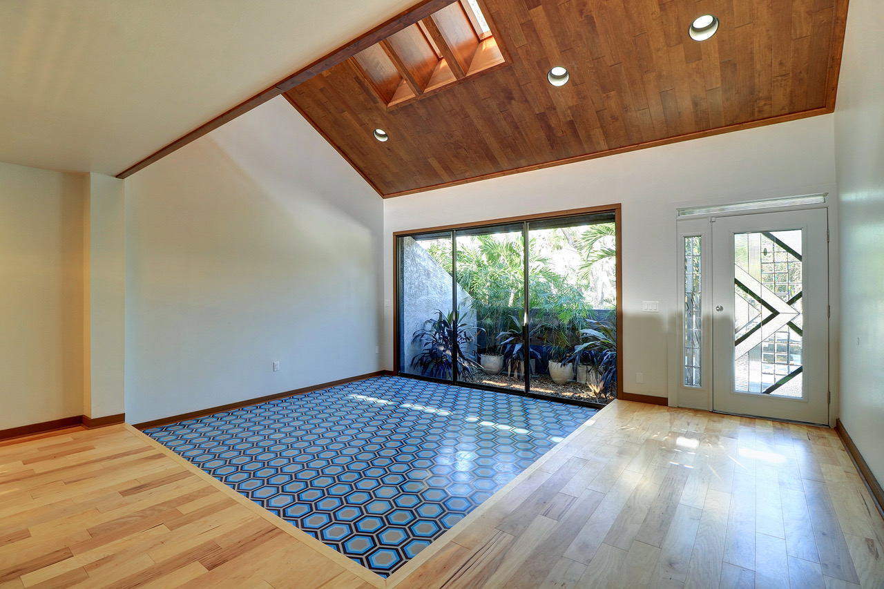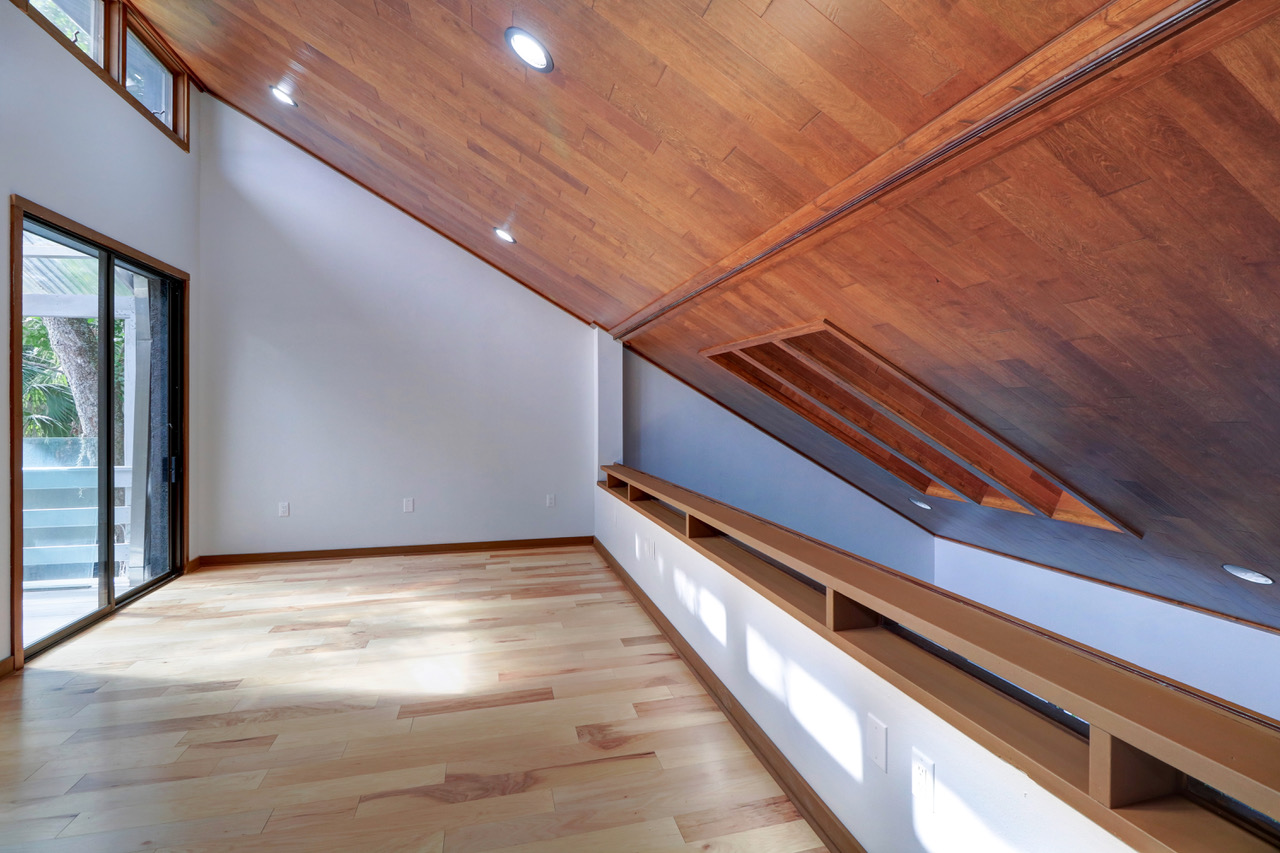 Frank Lloyd Wright would have loved this South Tampa hardwood ceiling renovation.